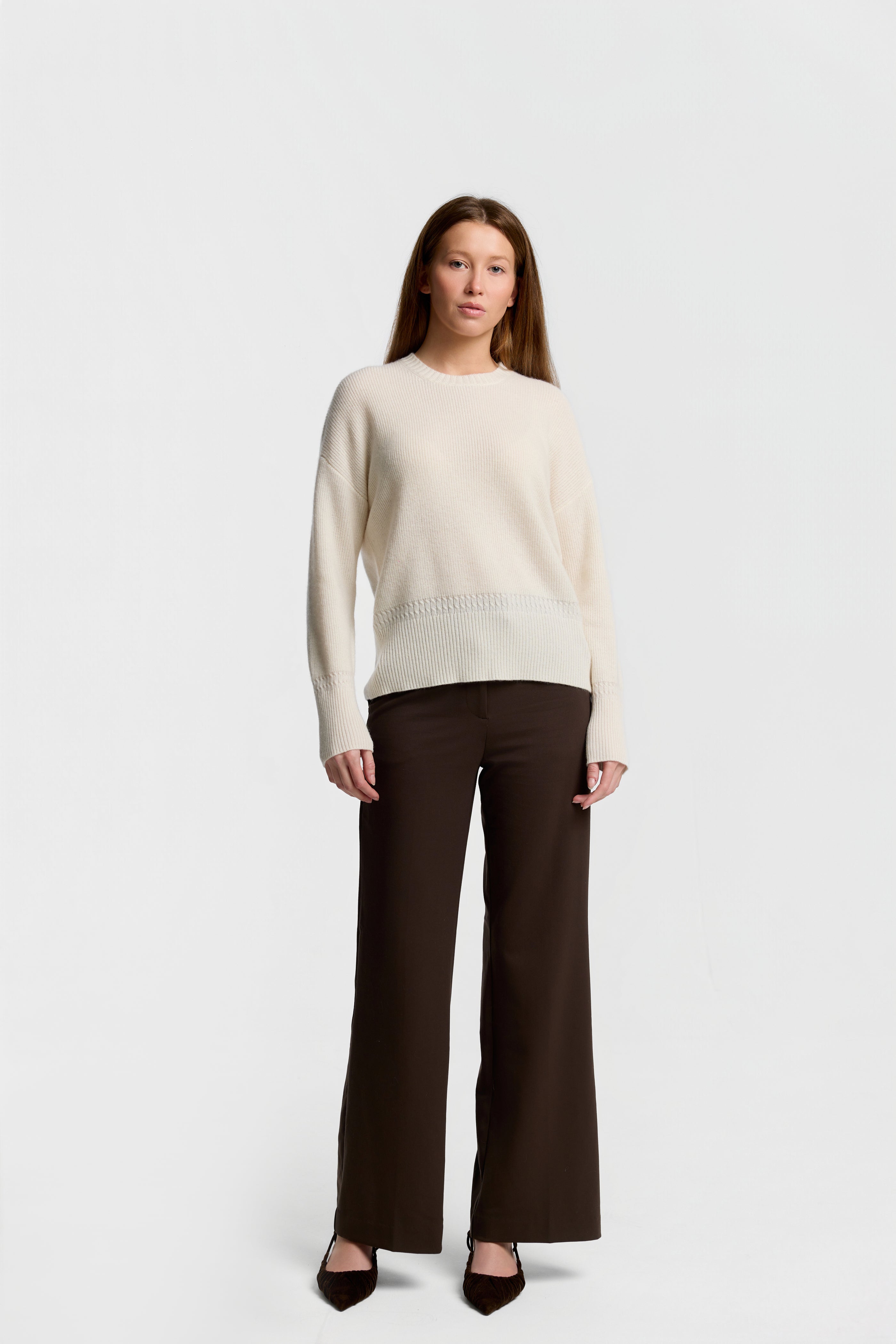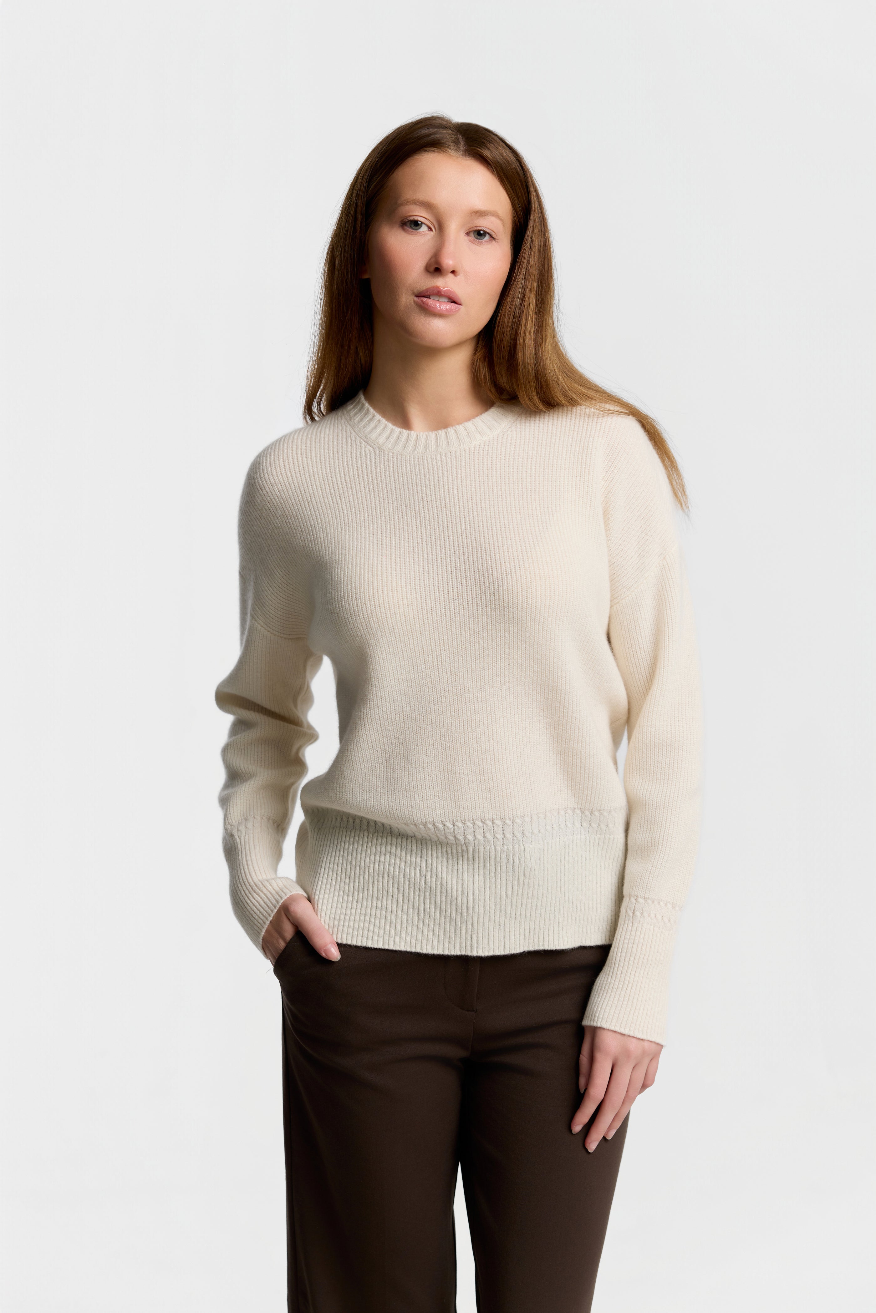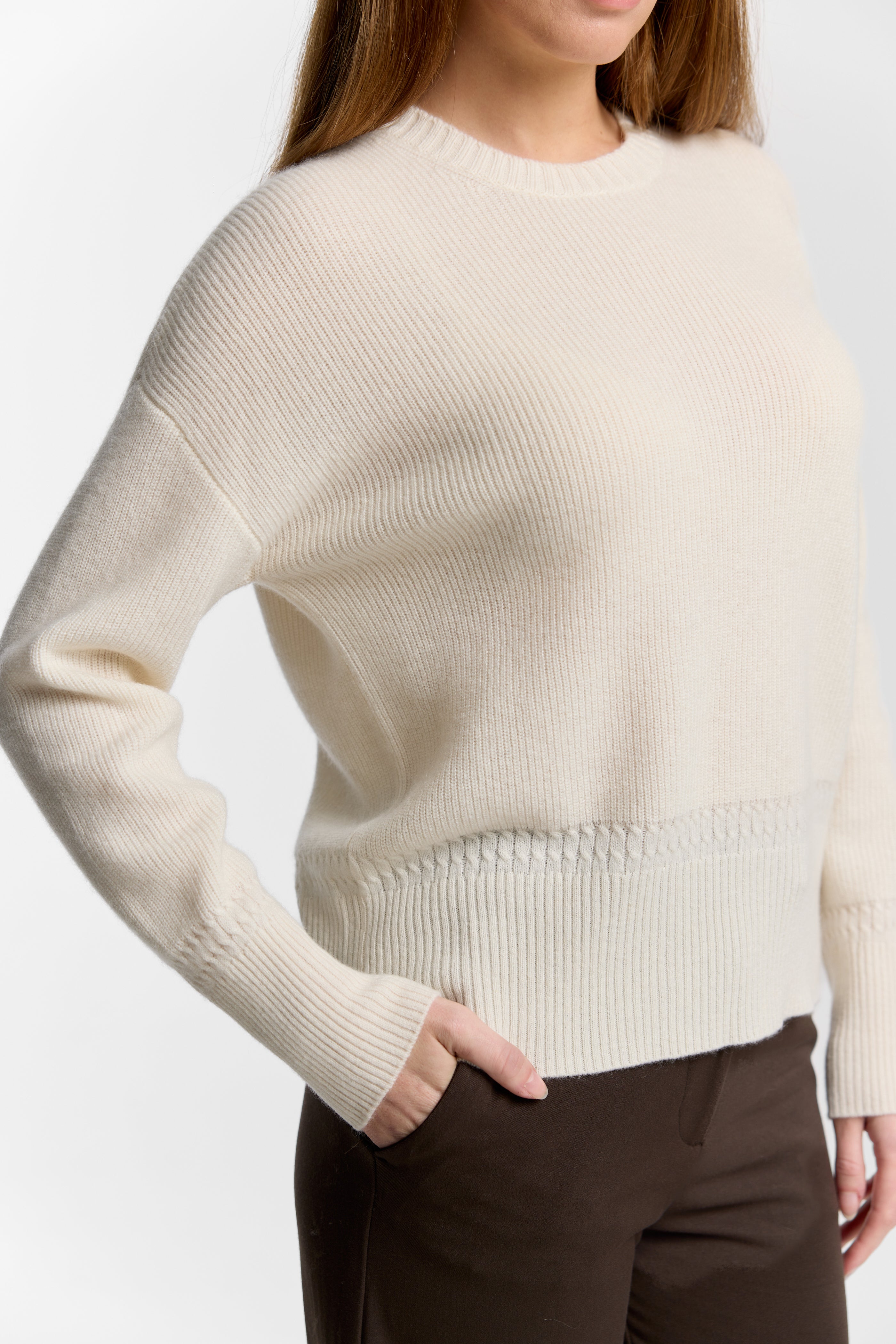 C-Neck Cable Detail Sweater