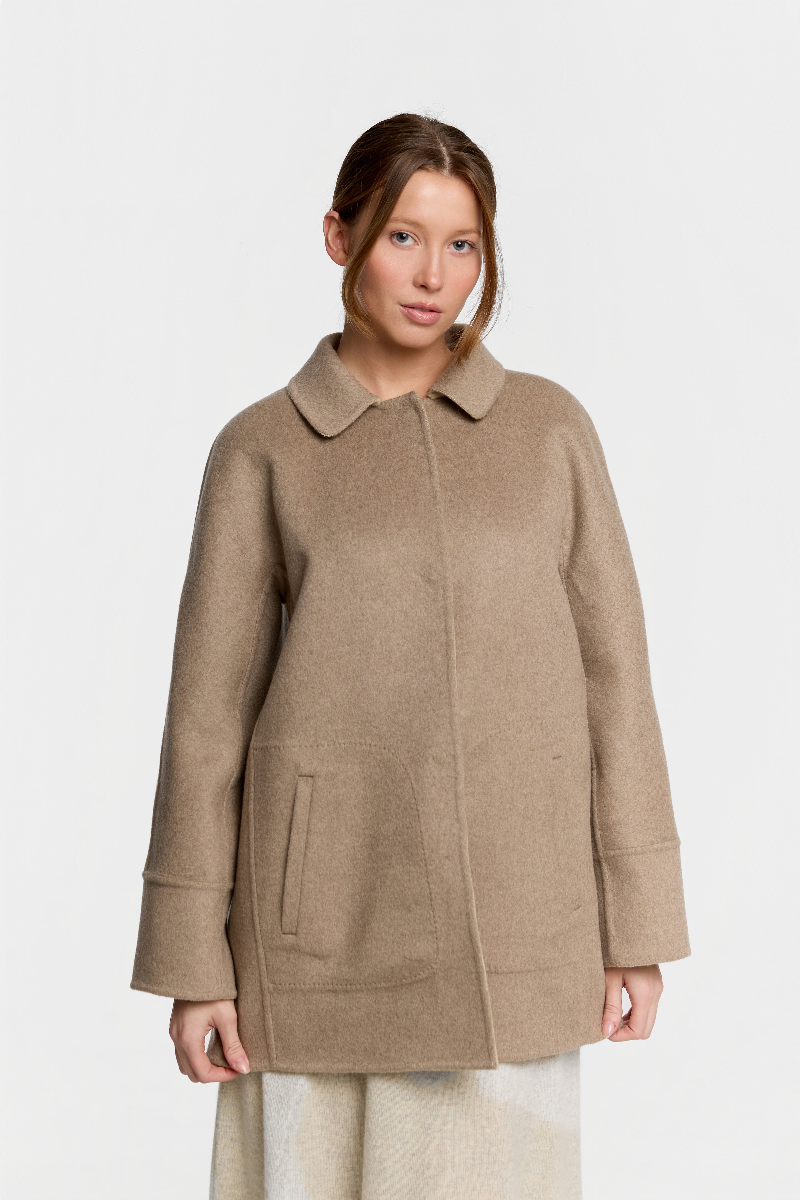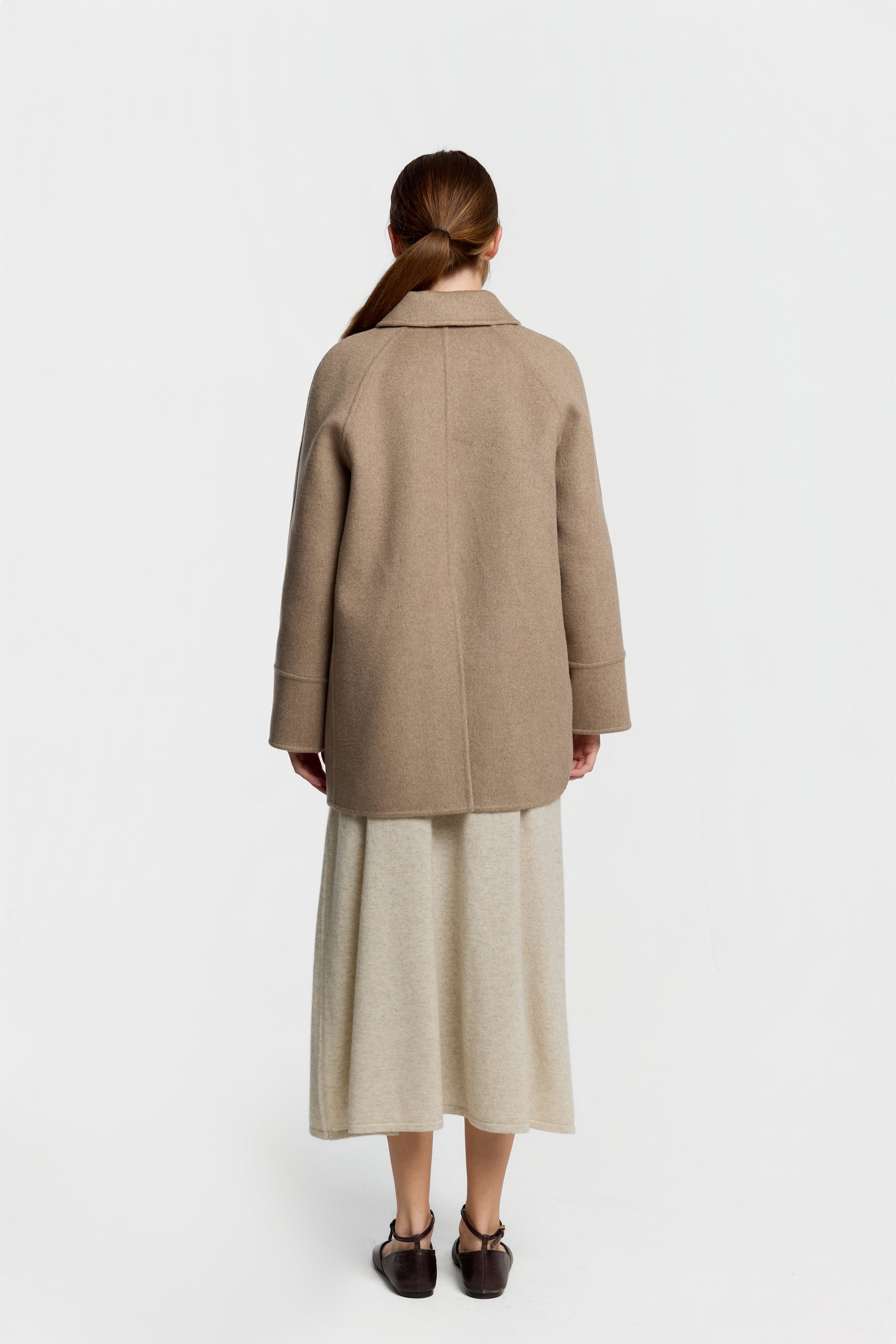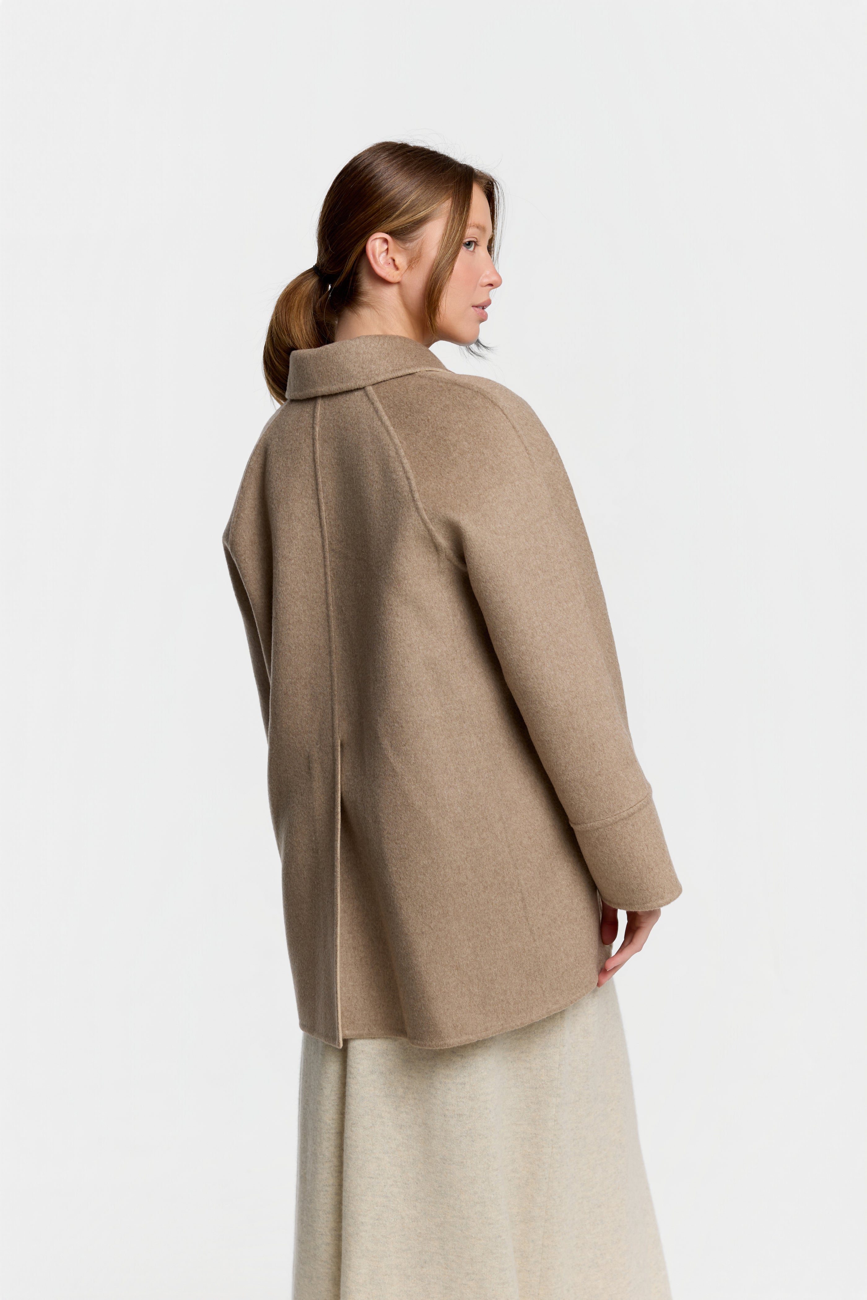 Our 100% Cashmere Reversible Half Coat in Beige is crafted from pure, premium cashmere, offering exceptional softness and natural insulation without added bulk. Its refined silhouette features a rounded collar, discreet front closure, and practical welt pockets, balancing everyday comfort with elevated design. With its clean lines, reversible construction, and timeless structure, this coat is a versatile outerwear essential you’ll reach for season after season—ideal for layering, travel, and effortless cold-weather style.